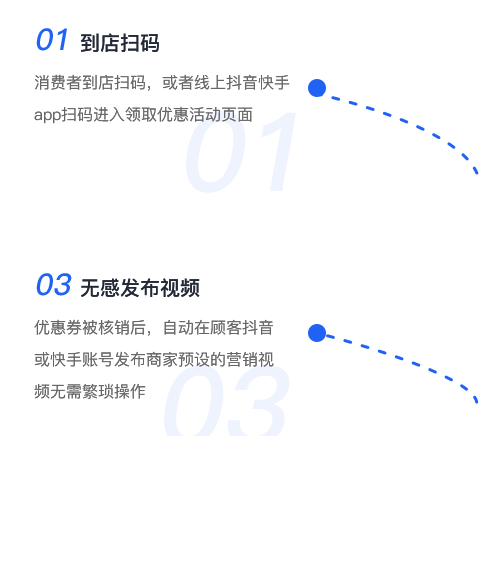 顾客在消费时,扫码商户提供的优惠 推广码,自动发布商家预设视频,获 得优惠;当前:顾客为商户在DY快 手上做了定位曝光,通讯录曝光,特 色产品与品牌曝光;顾客获得了买单 立减优惠,服务商获得支付宝微信 10%核券奖励